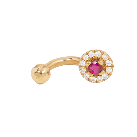 Piercingbanane Rubin und Brillanten als Karmoisierung