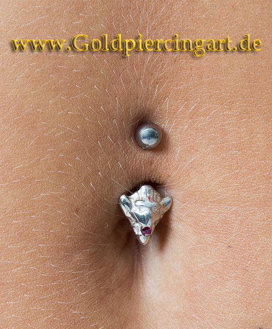 Piercingbanane mit Granat-Cabochon in Weißgold