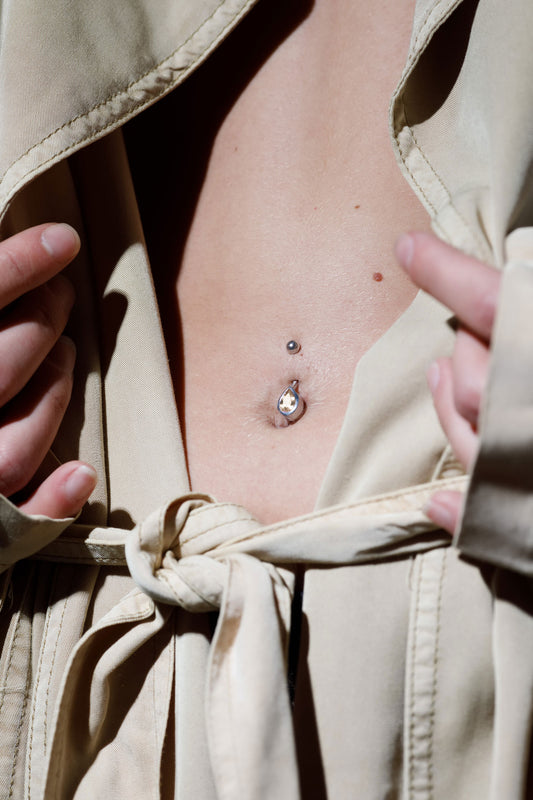 Piercingbanane mit Granat-Cabochon in Weißgold
